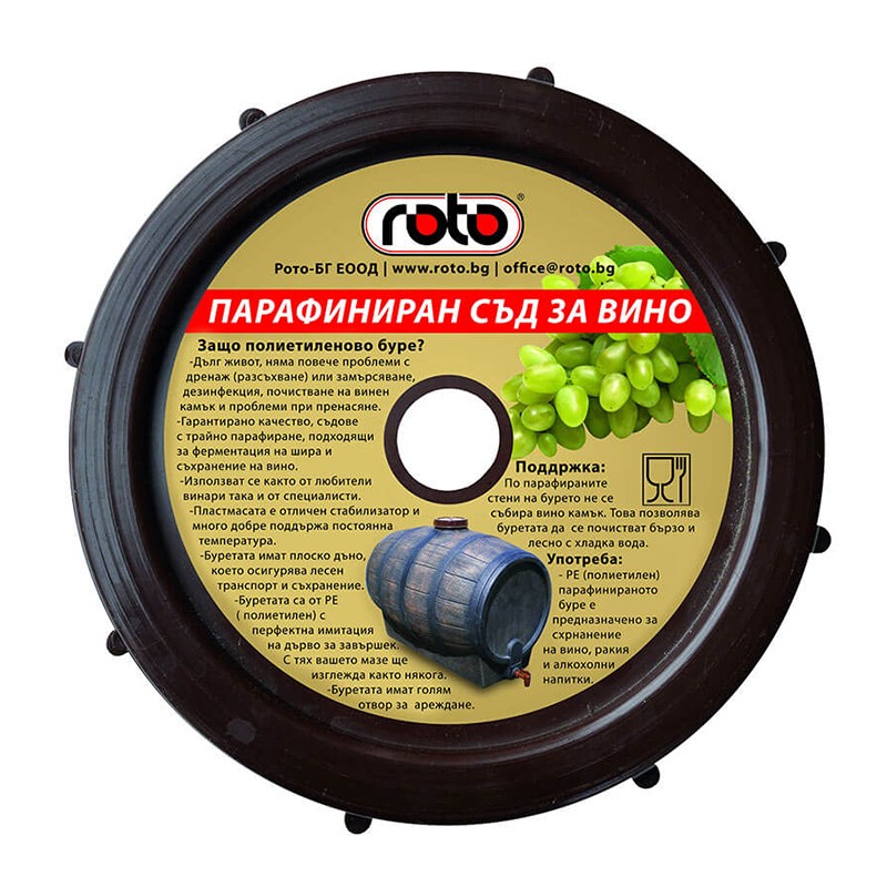Резервен капак на резба за буре Барик на марката ROTO с диаметър 140 мм, изработен от пластмаса.Подходящ е за бурета за вино и ракия, резервоари и други продукти на марката ROTO.Полиетиленовите бурета Барик на марката имат дълъг живот, с тях няма проблеми с дренаж (разсъхване) или замърсяване, дезинфекция, почистване на винен камък и проблеми при пренасяне.Съдове с трайно парафиране и гарантирано качество, подходящи за ферментация на шира и съхранение на вино.*Капакът е без уплътнение.