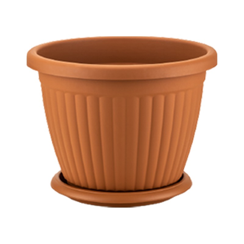 Саксията Kemer KSG4 от SERINOVA е перфектното решение за средни и по-големи растения, които изискват внимание и стилна обстановка. С вместимост от 3 литра и декоративен кафяв цвят, този модел съчетава функционалност и изискан дизайн в компактна форма. Елегантните релефни линии по повърхността придават изтънчен характер на саксията, като я правят не просто съд за растения, а истински декоративен акцент. Изработена е от висококачествена UV-устойчива пластмаса, което я прави подходяща за употреба както на открито, така и на закрито.
