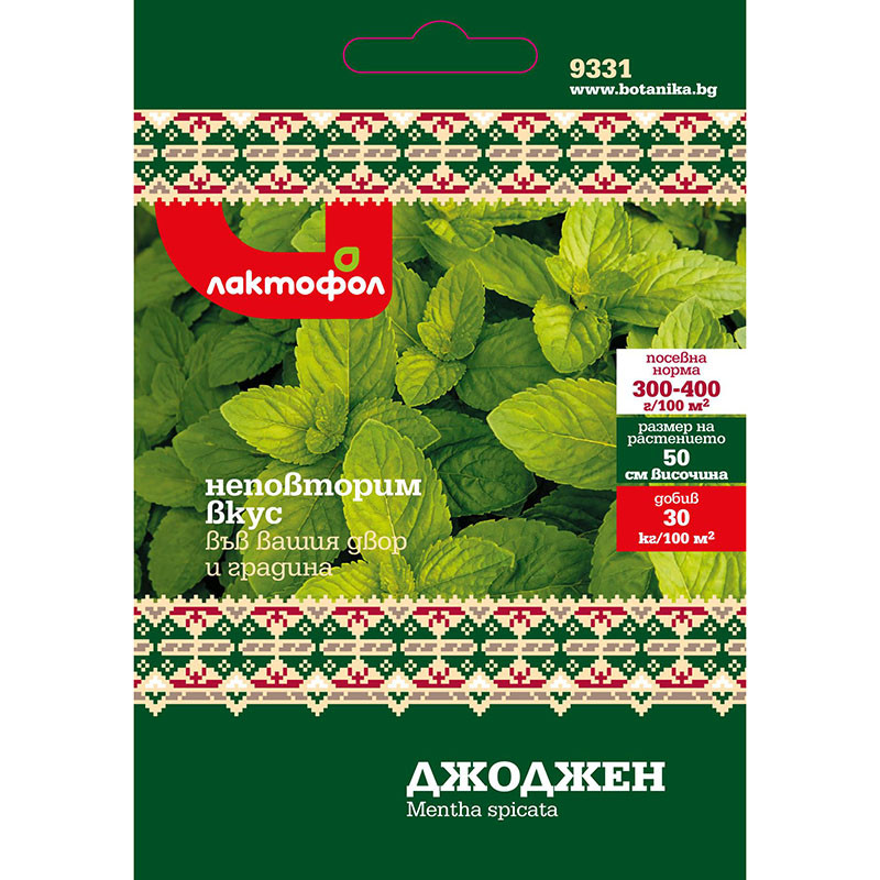 Семена джоджен на марката ЛАКТОФОЛ БОТАНИКА, подходящи за сеитба на открито през март - септември.Беритбата е през март - октомври, като добивът е около 30 кг/100 м2 при посевна норма - 300-400 гр/100 м2.Джодженът е многогодишно тревисто растение, което може да се отглежда в градината или в саксия. Вирее добре и на сенчести и на слънчеви места, но колкото повече светлина му осигурите, толкова по-богати и ароматни ще са листата му. Предпочита влажни и добре дренирани почви, успешно презимува в нашия климат.Традиционна българска подправка и участва в рецепти за варива, местни ястия, консерви и др.