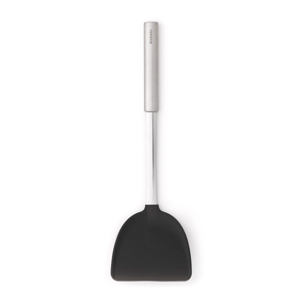 Шпатула със заоблен дизайн, който я прави изключително удобна при готвене в уок-тигани и други съдове с подобна форма.