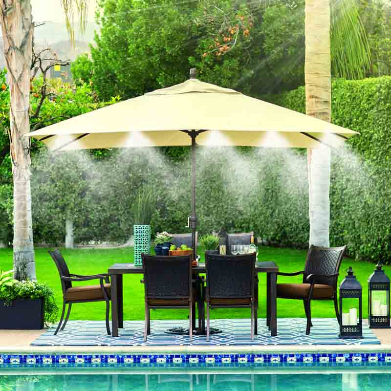 Система за охлаждане с водна мъгла Top Garden Premium, подходяща за градини, тераси, чадъри и др.Монтира се лесно и се свързва директно към чешмата.Системата е с ниска консумация на вода и с дължина 15 м.Намалява температурата с до 10°.