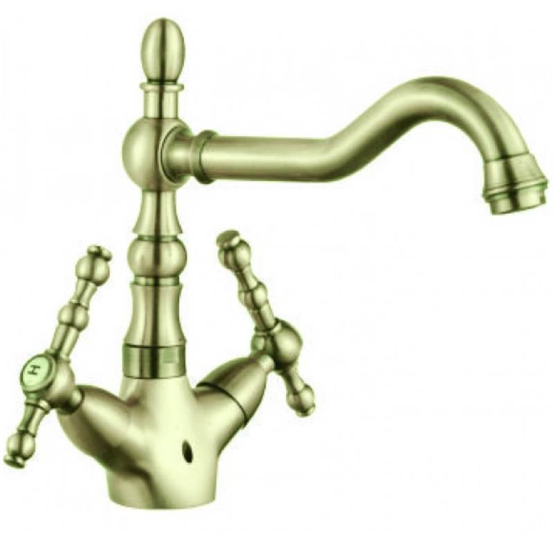 Смесител в ретро стил, предназначен за кухненски умивалник на марката Inter Ceramic. Изработен е от месинг и се предлага в цвят старо злато, предназначен е за стоящ монтаж. Батерията е с керамичен затварящ механизъм с две ръкохватки.