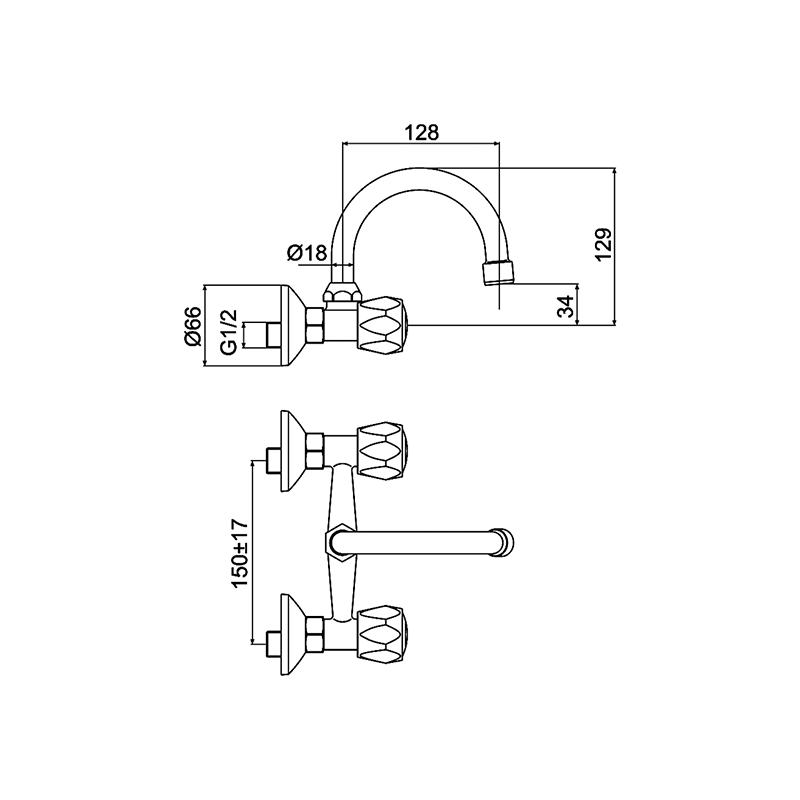 Смесител за кухня 7006-1D Mesina FORMA VITA, предназначен за стенен монтаж с 2 броя ексцентрици и розетки.Батерията е изработена от месинг и е с хромирано покритие.Смесителят е двуръкохватков, с индикация за топла и студена вода.Характеризира се с керамични затварящи механизми и аератор.Смесителят е с класически и стилен дизайн, който ще допринесе за красотата и уюта във Вашата кухня.