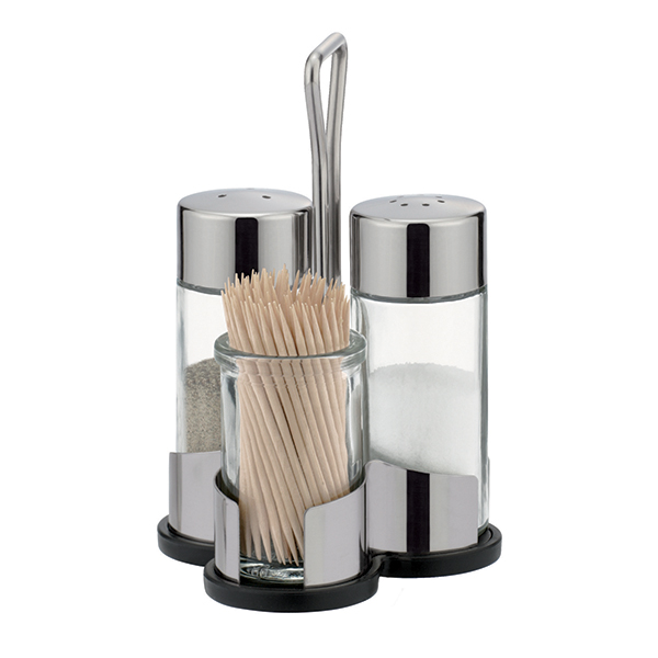 поставка за клечки за зъби - 1 брой. Изработени от висок клас неръждаема стомана, стъкло и устойчива пластмаса. Размери на комплекта: 8.5xH13.5cm