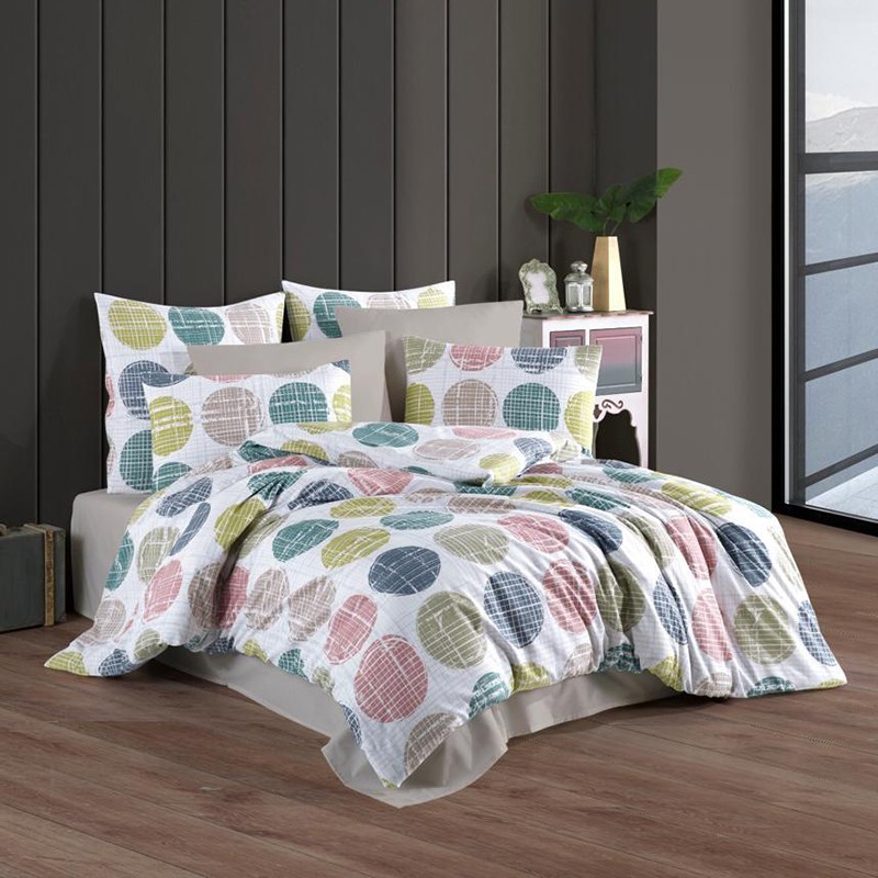 Спален комплект Sueno на българската марка RAKLA, изработен от 100% памук ранфорс, предназначен за макси спалня.Комплектът включва долен чаршаф с размери 220х240 см, плик с размери 200x220 см и две калъфки с размери 50x70 см.Спалното бельо се характеризира с ниска свиваемост и висока степен на издръжливост на цветовете.Осигурете си комфортен сън, чувство за свежест и приказно настроение с този приятен на допир спален комплект.