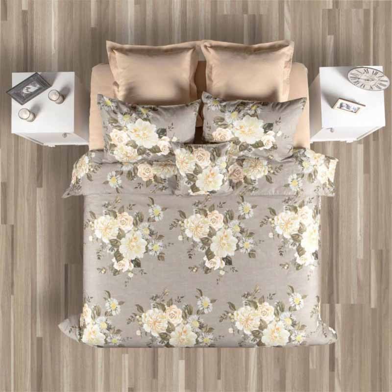 Спален комплект Дейна от четири части на българската марка RAKLA, изработен от 100% памук ранфорс.Комплектът е подходящ за легло персон и половина и включва долен чаршаф с размери 150х240 см, плик с размери 150x220 см и две калъфки с размери 50x70 см.Спалното бельо се характеризира с ниска свиваемост и издръжливост на цветовете.Осигурете си комфортен сън и чувство за свежест с този приятен на допир спален комплект с десен на цветя.