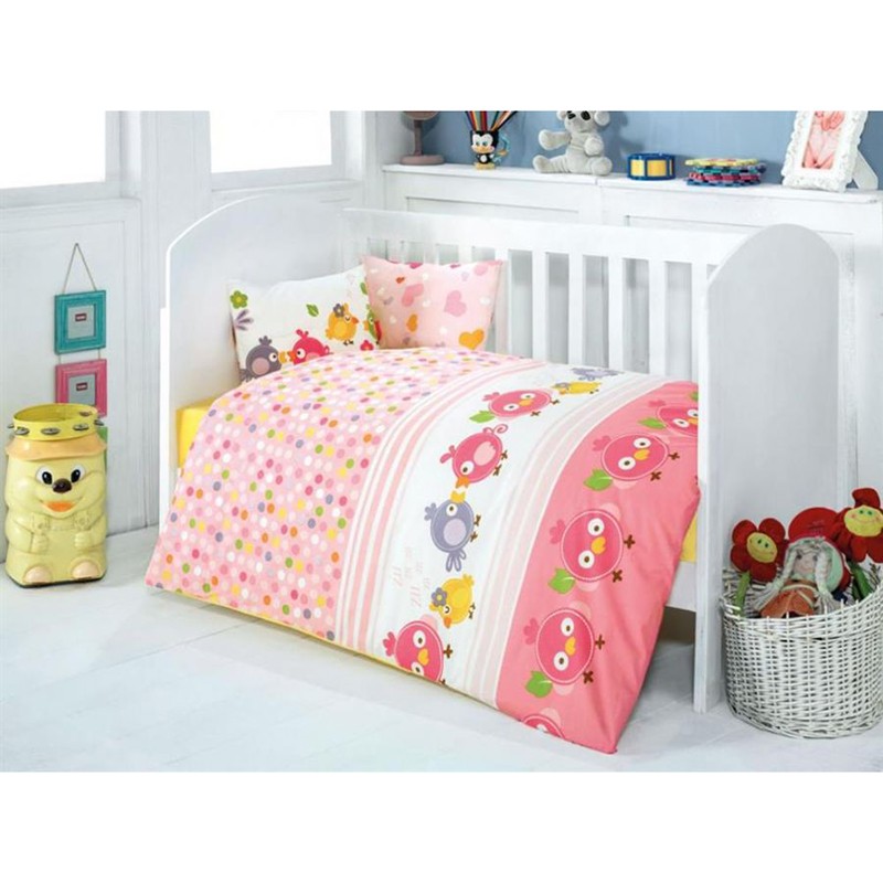 Спален комплект за бебе от 4 части на турската марка ZAMBAK с десен на точки и анимационни герои, изработен от 100% памук Ранфорс.Комплектът съдържа плик за завивка с размери 100x150 см, долен чаршаф с размери 100x150 см и две калъфки за възглавница с размери 35x45 см.Качествено спално бельо в нежни розови цветове, с което ще осигурите приказен и спокоен сън на вашата малка принцеса.