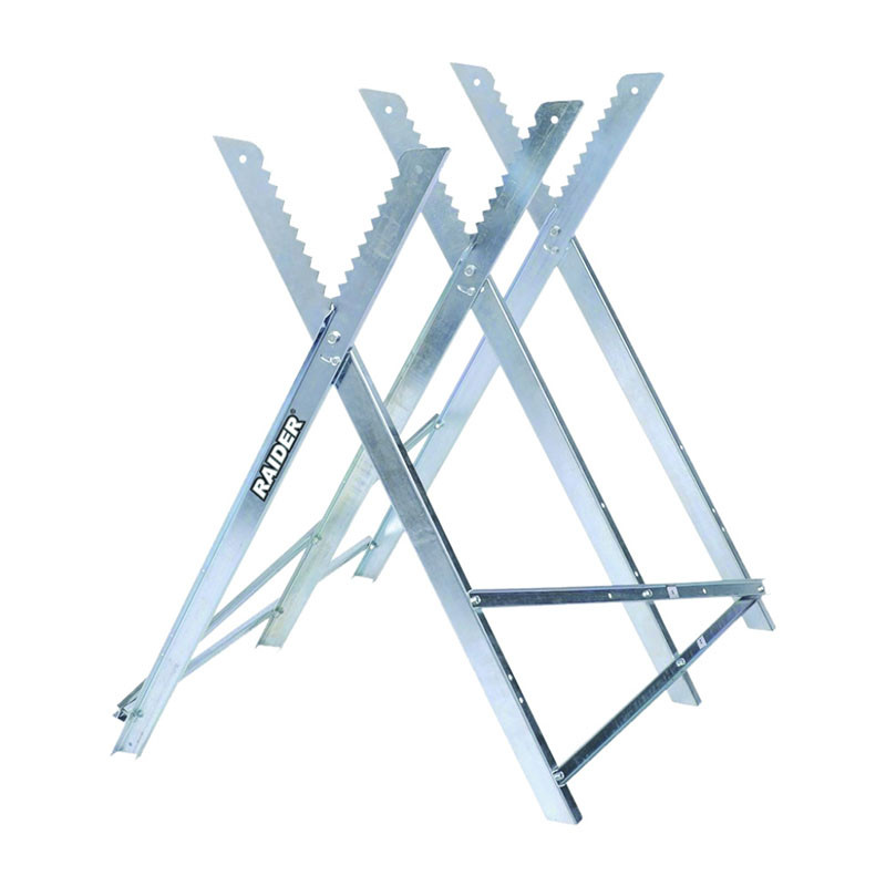 Метална стойка за рязане на дърва на марката RAIDER с поцинкована конструкция с цел предпазване от ръжда и защита от неблагоприятни атмосферни условия.Помощното средство има назъбени ръбове, благодарение на които дървото се поставя и захваща стабилно.