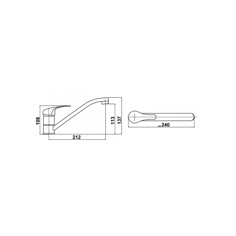 Смесител за кухня Crystal 80013 FORMA VITA с дълъг чучур, предназначен за стоящ монтаж.Батерията е изработена от месинг и е с хромирано покритие.Характеризира се с керамичен механизъм ф35 мм, аератор, гъвкави захранващи връзки 35 см и размер на присъединителния край 1/2”.Смесителят е едноръкохватков, с индикация за топла и студена вода.