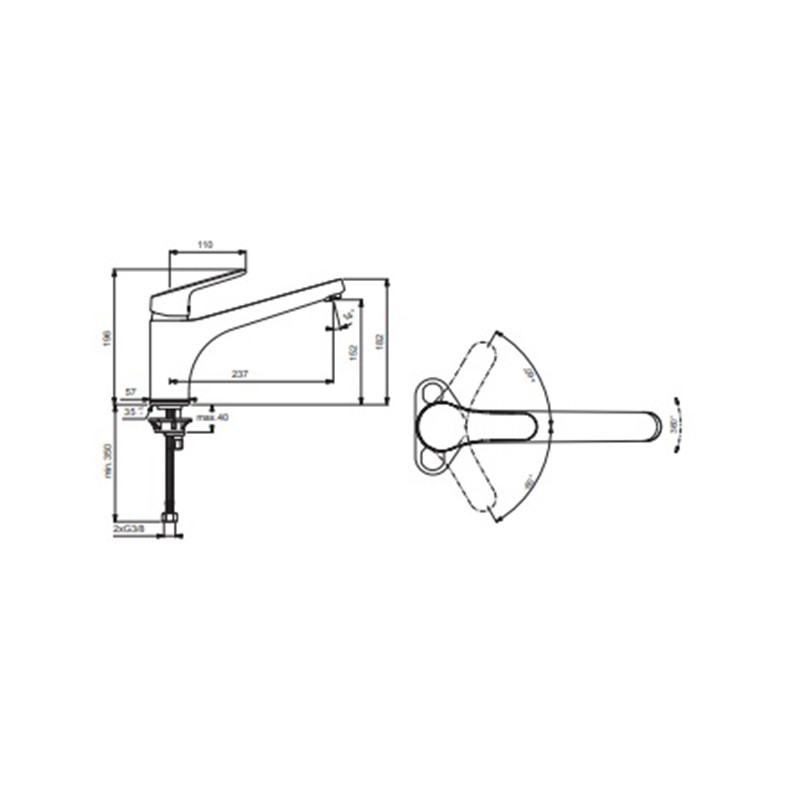 Едноръкохватков смесител за кухня Calista Vidima с 47 мм керамичен Click затварящ механизъм и лят чучур.Предназначен е за стоящ монтаж с гъвкави връзки G3/8".Характеризира се с Easy fix присъединяване.Смесителят разполага с метална ръкохватка с индикатор за топла и студена вода и аератор Cascade.Моделът е в цвят хром.Съответства на стандарт EN817.