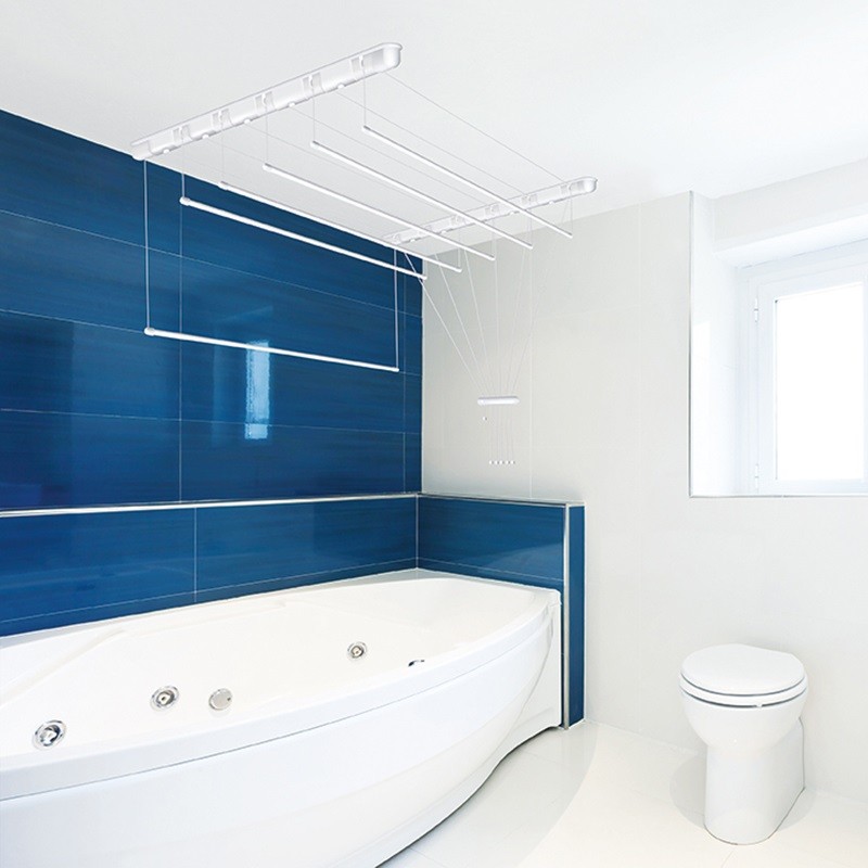Таванен простир на полската марката SEPIO с шест пръта, предназначен за вътрешна и външна употреба. Подходящ е за помещения с височина до 3 м, идеален за баня или тераса.Пръчките са изработени от стомана и са с полиетиленово покритие в бял цвят. Оборудвани са с тапа, която предотвратява навлизането на вода вътре и предпазва от корозия.Пръчките са с дължина 200 см, тоест общият капацитет за сушене е 12 м.Максималното натоварване на пръчка е 2 кг.Простирът се характеризира с лесно повдигане/спускане на прътите.Размерите му в разгънато състояние са: 53x200x300 см (6x6x200 см в опаковка).Предлага се с монтажен комплект.