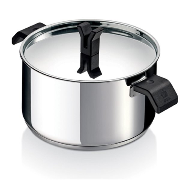 Благодарение на същата дръжка, капакът се поставя върху ръба на тенджерата