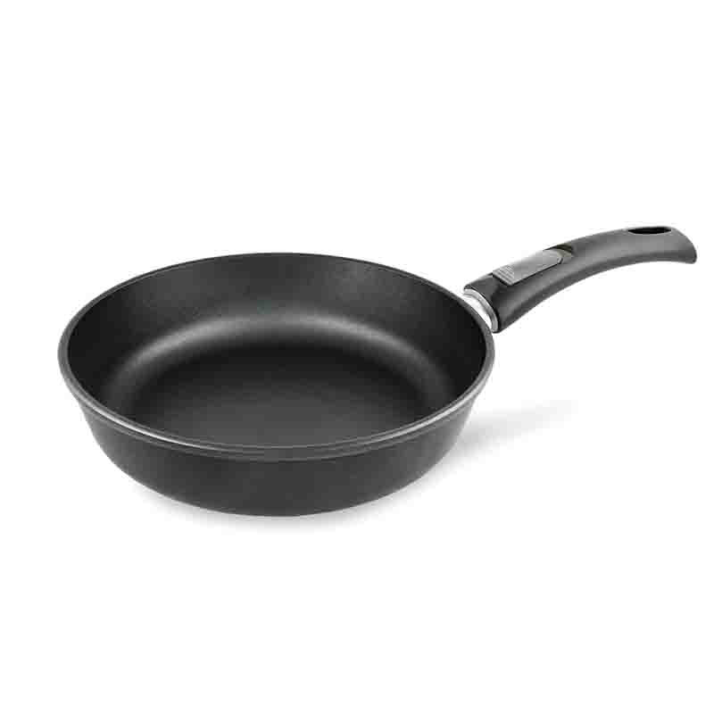 Тиган с подвижна дръжка от серията Titan II на руската марка НЕВА МЕТАЛЛ ПОСУДА, изработен от лят алуминий и с незалепващо покритие.Чудесен за приготвяне на ястия като шницели, зеле, гулаш, както и гарнитури и ястия с много съставки.Основното предимство на серията е многослойната незалепваща система Titan II, която използва първокласни материали.Покритието се характеризира с повишена устойчивост на износване, благодарение на което тиганът запазва незалепващи свойства и безупречен външен вид за дълго време.В него можете да готвите без мазнина или с минимално количество, като се запазва естественият вкус на продуктите.По-дебелите стени и дъно осигуряват равномерно нагряване на тигана и запазват топлината по-дълго.Може да се използва като форма за печене във фурната, след като се премахне дръжката.Тиганът е с диаметър на горната част 22 см, диаметър на дъното 16 см и дебелина на дъното 0.6 см.Подходящ е за газови, електрически, стъклокерамични котлони, както и за съдомиялна машина.Перфектен избор за тези, които ценят стилен дизайн, съчетан с издръжливост.