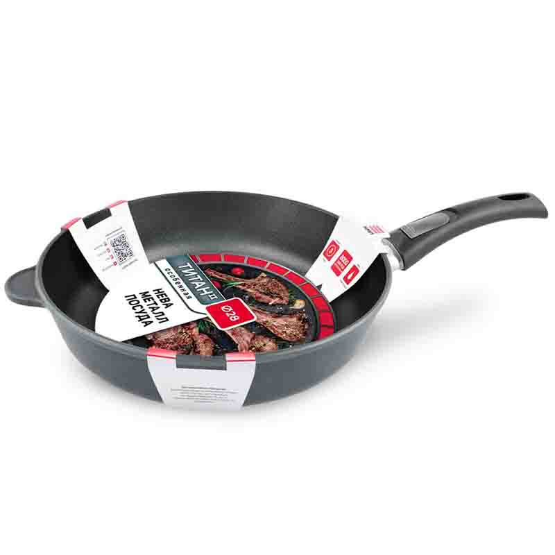 Тиган с универсална форма, чудесен за готвене на ястия като кюфтета, шницели, зеле, печено, гулаш, както и странични ястия с много съставки. Подвижната дръжка го прави практичен и компактен, с възможност да бъде използван и във фурната.