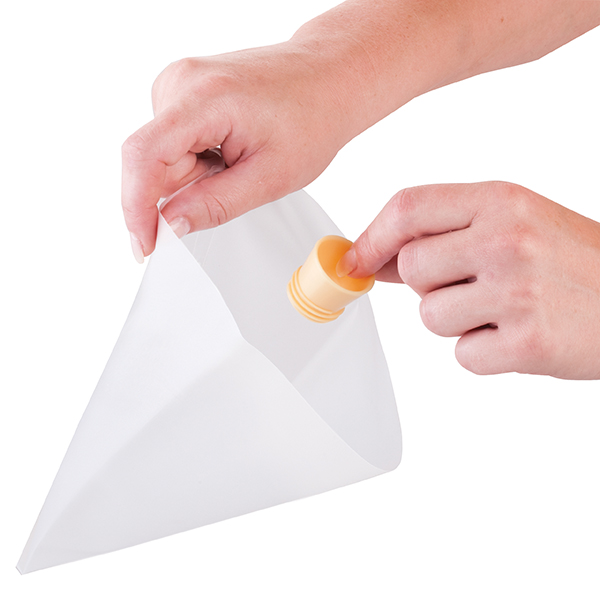 Предназначена за декориране и пълнене. С незалепващо покритие отвътре и специална обработка против плъзгане отвън. За ползване с пластмасови пош накрайници DELICIA - отрежете около 4cm от връхчето на плика