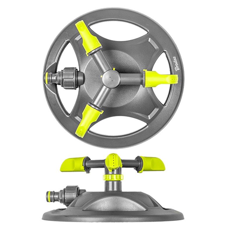 Трираменен ротационен разпръсквач от серията Lime Line на марката BRADAS на основа, изработена от висококачествен материал.Всяко рамо може да се регулира в три позиции, а основата с форма на кръг предотвратява повреда на тревата.Разпръсквачът може да напоява кръг с диаметър 14 м.