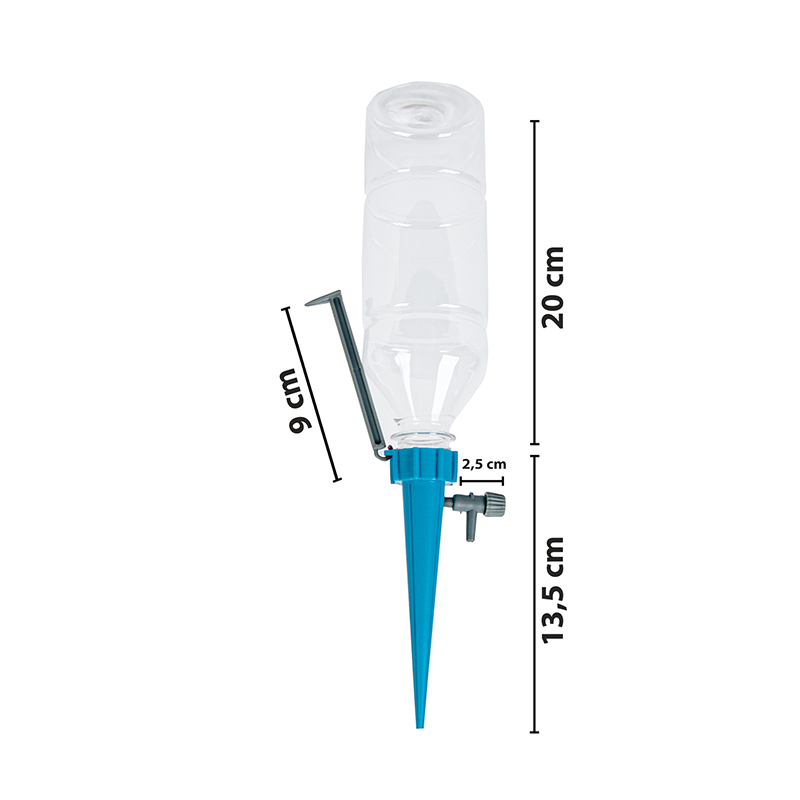 Едно от най-големите удобства на този уред за капково поливане е неговата гъвкавост. Той е съвместим с най-разпространените размери пластмасови бутилки за вода – от 0.5 л до 2.5 л. Това ви позволява да изберете подходящия обем в зависимост от нуждите на растението и продължителността на вашето отсъствие. Благодарение на вградения регулиращ клапан, можете лесно да настроите скоростта на капене, осигурявайки вода за период от 1 до 30 дни. Така всяко цвете ще получи точно толкова вода, колкото му е нужна, без риск от преполиване или засушаване.