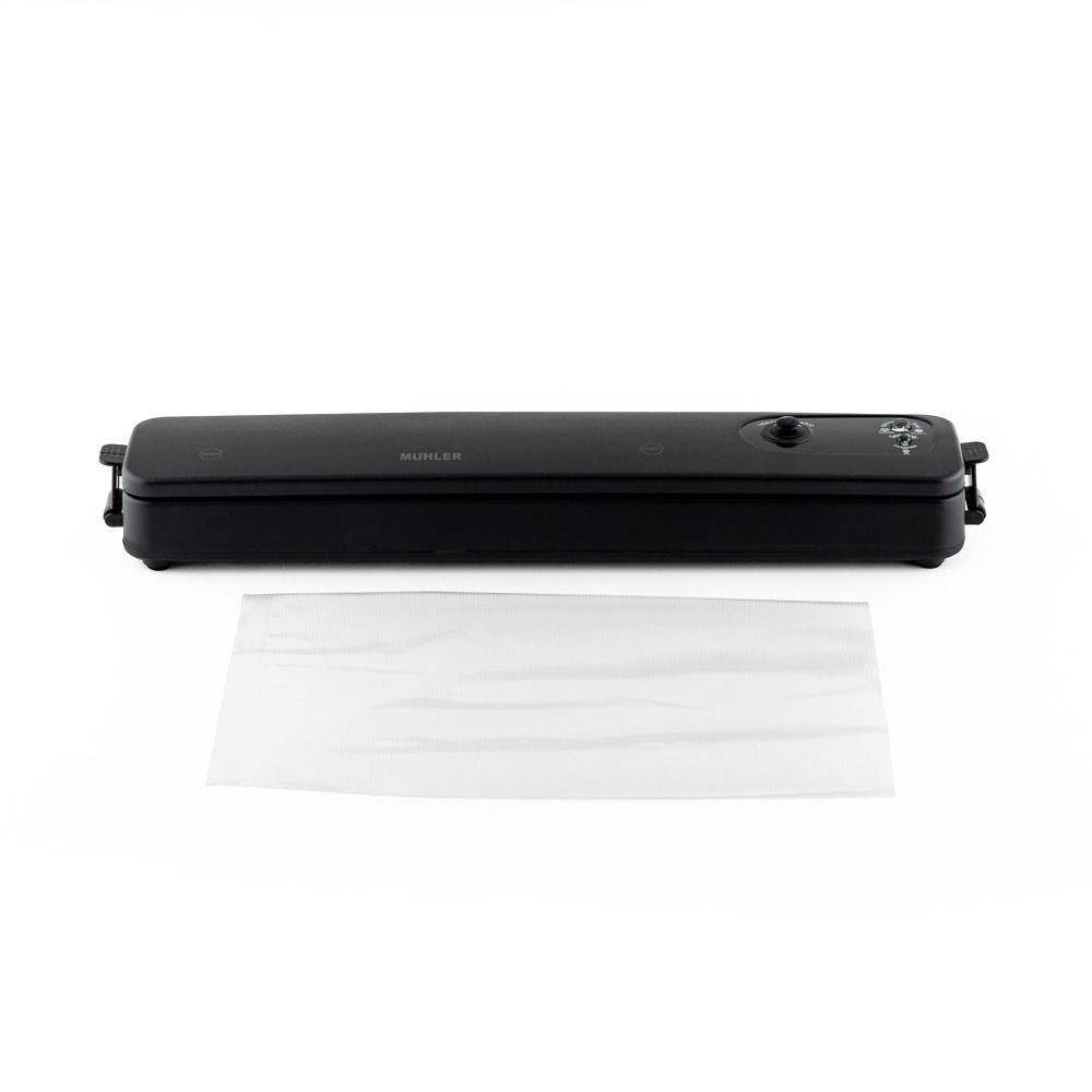 Вакуум уредът за храна MUHLER MV-90N е практично и компактно решение за съхранение на храни за по-дълго време. С помощта на вакуумирането запазвате свежестта, вкуса и хранителните качества на продуктите, като същевременно намалявате риска от разваляне. Подходящ е както за сухи, така и за влажни храни, а компактният му дизайн позволява лесно съхранение в кухнята.