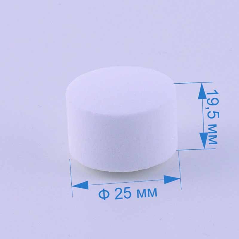 Вакуумно изпарена таблетирана сол за пречистване на вода TS25 на марката BIO WATER с много високо качество.Правилната работа на омекотителната система за вода зависи от качеството на консуматива, който се използва. За качествена регенерация е необходимо в таблетираната сол да няма примеси и да има високо съдържание на чист натриев хлорид (над 97% по норма).При наличие на примеси в таблетираната сол могат да се запушат всмукателните механизми на омекотителя за вода и това да доведе до проблеми с работата му.За постигането на чист натриев хлорид без примеси солта трябва да е получена по метода вакуумно изпаряване.Високата плътност на пресоване на таблетката от 342 N/cm2 гарантира много по-ниската консумация - приблизително от 50% до 400% таблетирана сол спрямо други видове таблетирана сол, предлагани на българския пазар.*Важно: пресованите таблетки с ниска плътност лесно се разпадат при намокряне, това води до по-висока консумация на таблетирана сол. По-високите нива на NaCl в саламурения разтвор за регенерация не се поемат от йонообменната смола и заминат в канала.Таблетките са в бял цвят, с размери: Ø25x19.5 мм и тегло 15,50 гр.Предлагат се в чувал с тегло 25 кг.