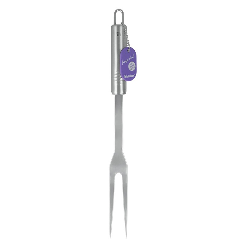 Вилица за месо Imperial на марката METALTEX, изработена от неръждаема стомана и с хромирано покритие на металните части.Има овална дръжка с отвор за закачане.Вилицата е с дължина 32 см.Може да се мие в съдомиялна машина.