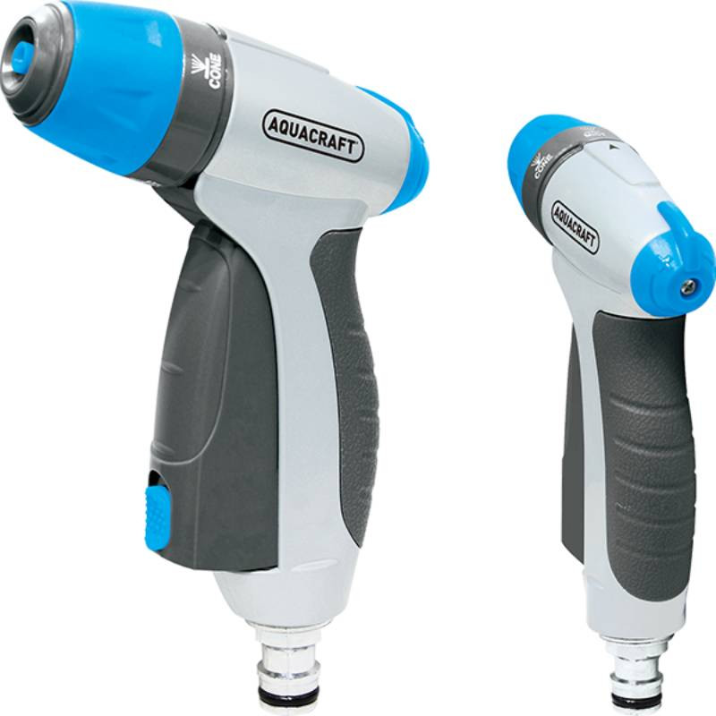 Воден пистолет Soft-Touch с с метално тяло, адаптор, три струи на пръскане и напълно регулируем дебит.